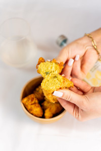 6€Beignets croustillants à la courgette, épices et fêta AOP